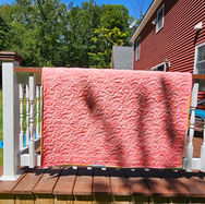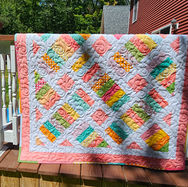 Fabrics for the top are a 2 1/2" strip roll by Amanda Murphy for Benartex (I forgot the name of the collection). The background and backing are Shabby Coral by Lori Holt for Riley Blake.